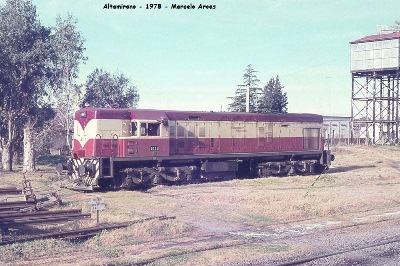 También de Marcelo Arcas. Locomotora U18 en la zona de la mesa giratoria y galpones de máquinas. Año 1978.