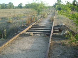 7. Una panorámica de las vías casi tapadas por el pasto. Al fondo vías hacia Las Flores.