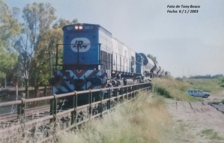30/12/2002: 14:00 hs. Locomotora 9017 con formación de carga de 172 ejes. Descendente.